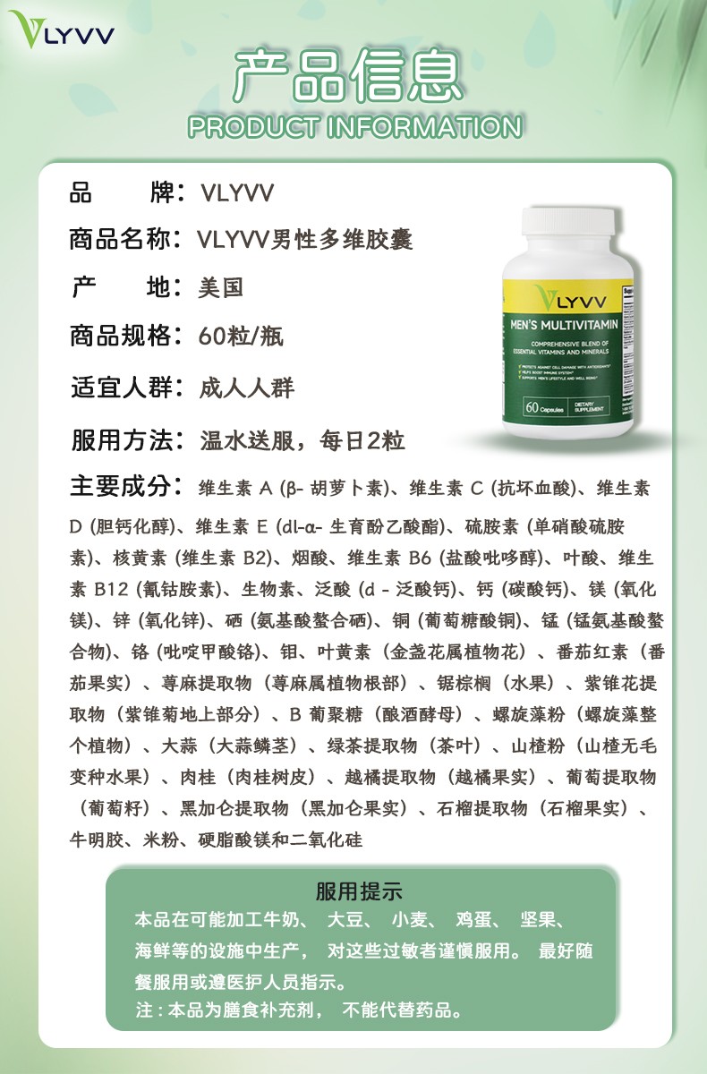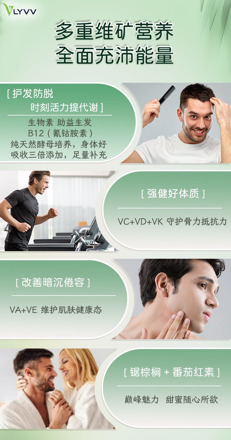 现代男性,在生活的战场上冲锋陷阵,健康是他们坚实的后盾。VLYVV Science 男性复合维生素,专为满足不同年龄段男性的独特营养需求而配制,全面助力男性整体健康、能量水平和福祉。
